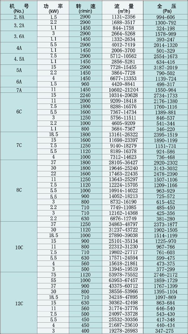 規(guī)格: F4-72型玻璃鋼防腐通風(fēng)機其性能參數(shù)與安裝尺寸與4-72型離心通風(fēng)機相同。