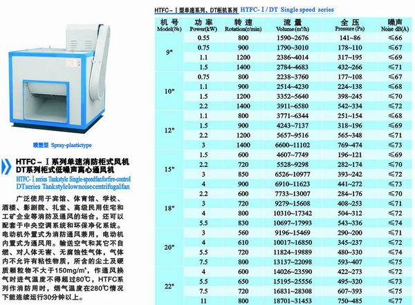 HTFC離心式消防系列風(fēng)機(jī)用于體育館,地下停車場,學(xué)校,酒樓,商場,大型住宅區(qū)等消防能風(fēng)場所,平時(shí)作普通通風(fēng)用,發(fā)生火災(zāi)時(shí)作消防排煙用時(shí)能在280℃高溫條件下連續(xù)運(yùn)行30分鐘以上不損壞 。